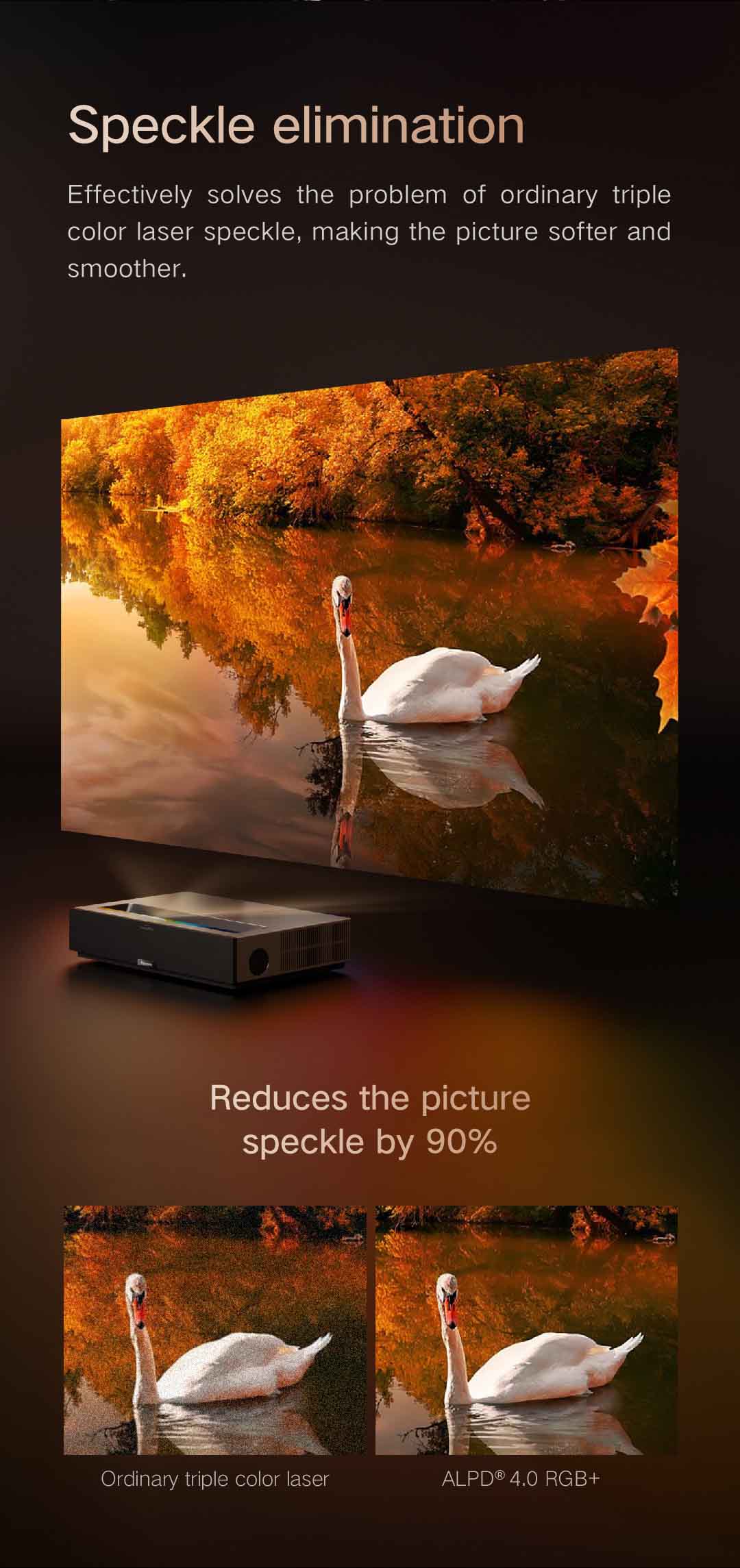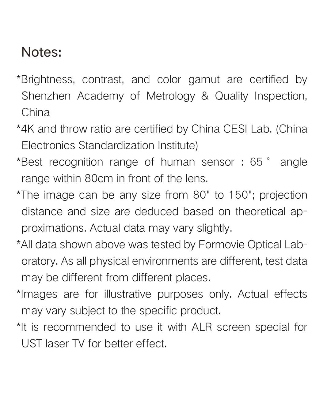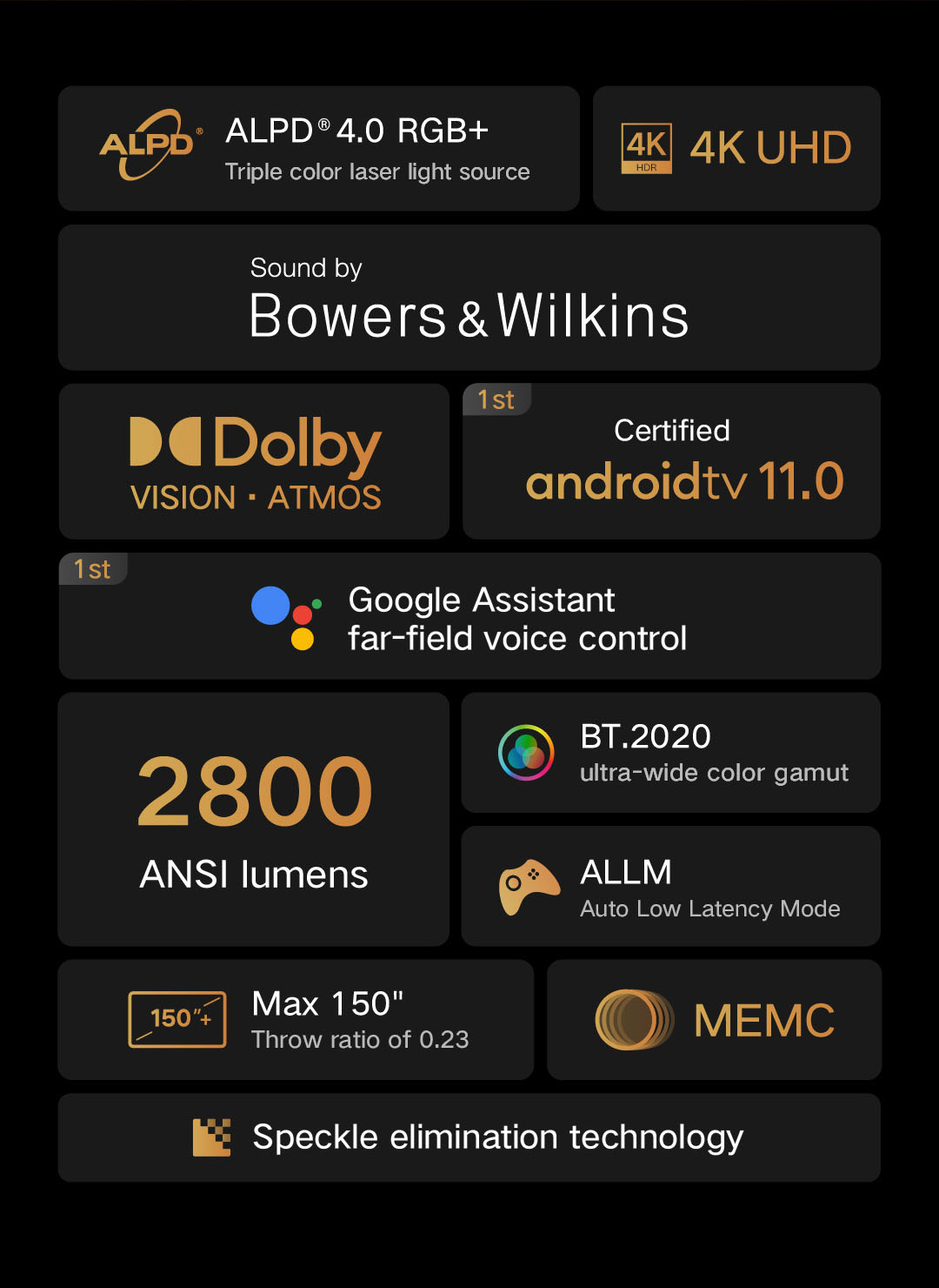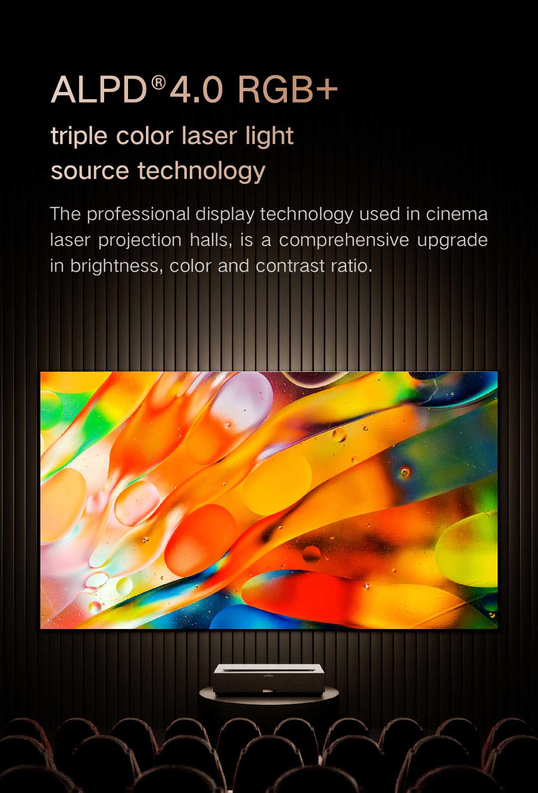 I won't go into technical details because I am not an expert, but this thing is just awesome! The image is spectacular with terrific colour, contrast and some of the best black levels I have seen in a projector. Dolby Vision and HDR10 work unexpectedly well within a projector's limitation and the included "sound bar" by Bowers and Wilkins sound so good that I am using it instead of my old Stereo Hi-Fi Audiolab 8000A with EPOS speakers. If you are looking for a Ultra Short Throw Projector around this price or even more expensive, this is the one to get. Deeply satisfied. Now I just need to upgrade to a proper UST projection screen and improve it even better.